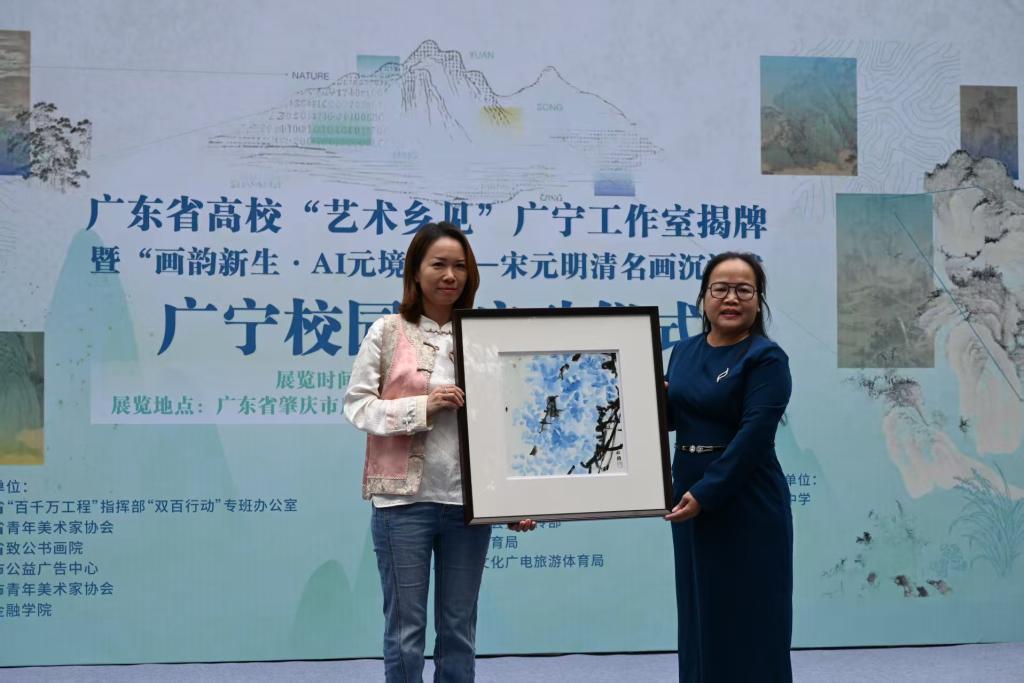 工作室负责人suncitygroup太阳新城梁冰教授介绍了工作室未来发展规划,广州市白云区政协委员欧彩颜向广宁中学赠送了书画作品。